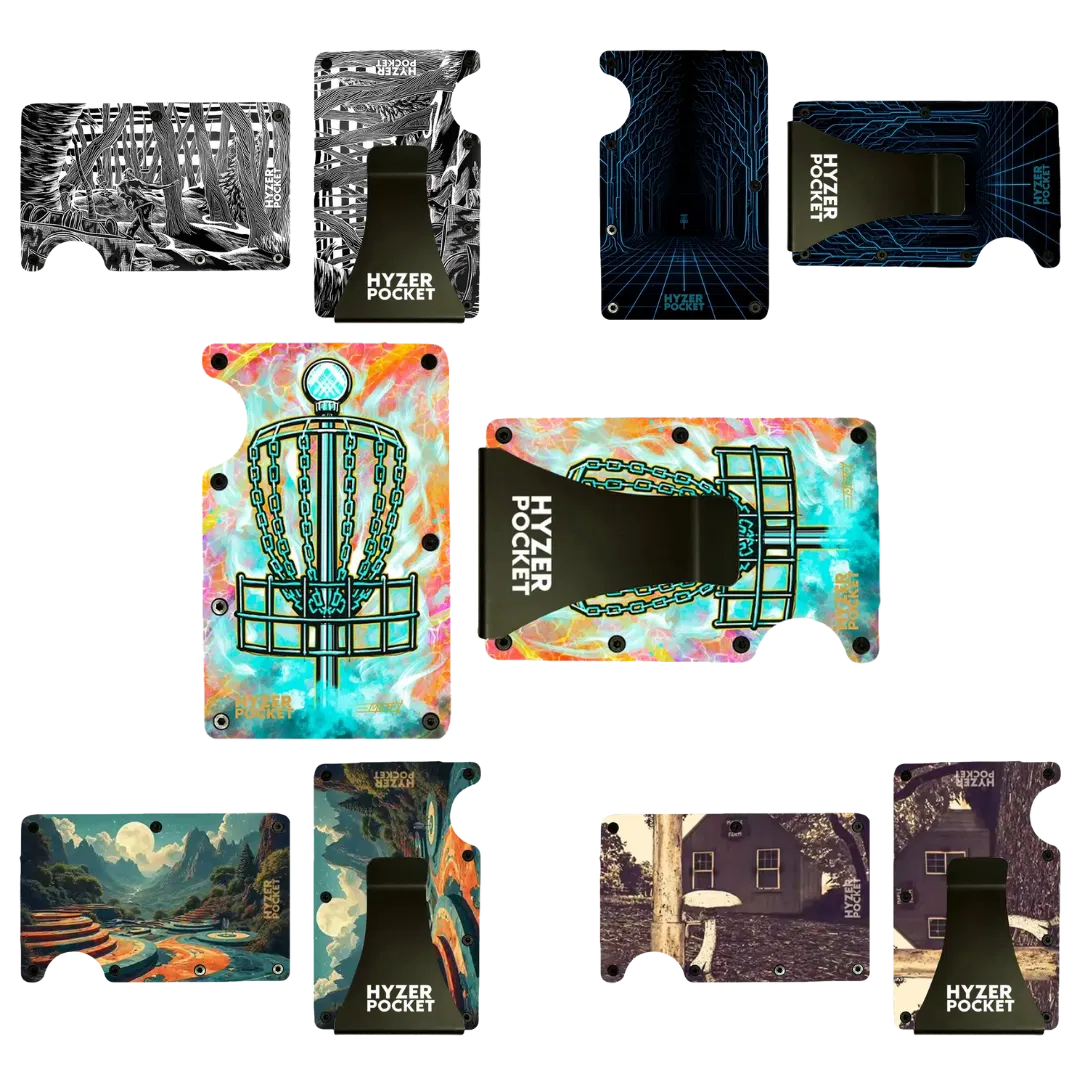 Our minimalist, RFID-blocking wallet, is crafted from aluminum alloy and carbon fiber. While weighing less than 3 oz, it combines disc golf themes with durability, sleek design, and performance.